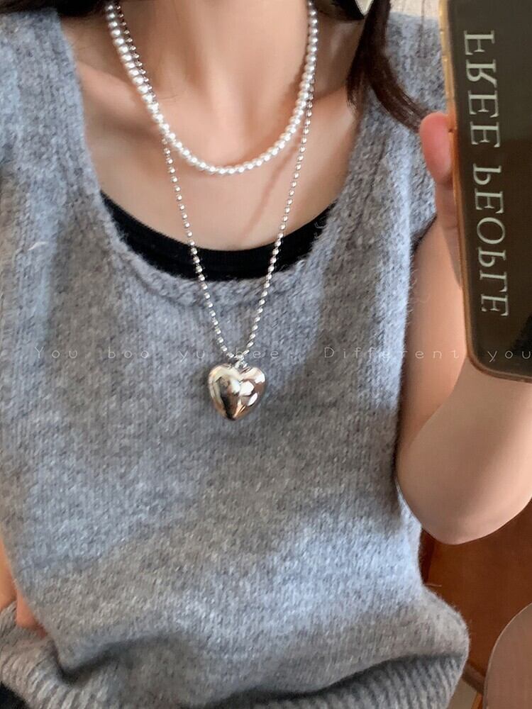 2025年新作シルバーハートネックレス。ロングチェーンで高級感を演出し、デイリーから特別な日まで幅広く活躍です。
