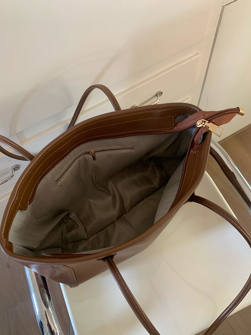 内側にファスナー付きポケットあり。容量はA4サイズの教科書、タブレット、スマートフォン、財布、モバイルバッテリー、水筒などを収納可能。