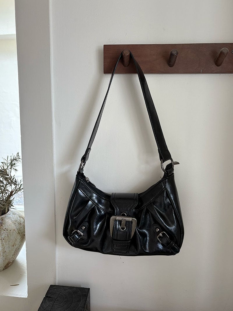 Y2Kパンク×バイク風の腋下バッグ。マグネット+ファスナー開閉で使いやすく、内ポケット付き。スマホやコスメ類がすっきり収納できるサイズ感。個性と実用性を兼ね備えたデザイン。