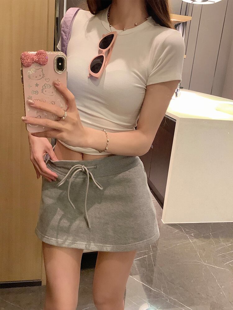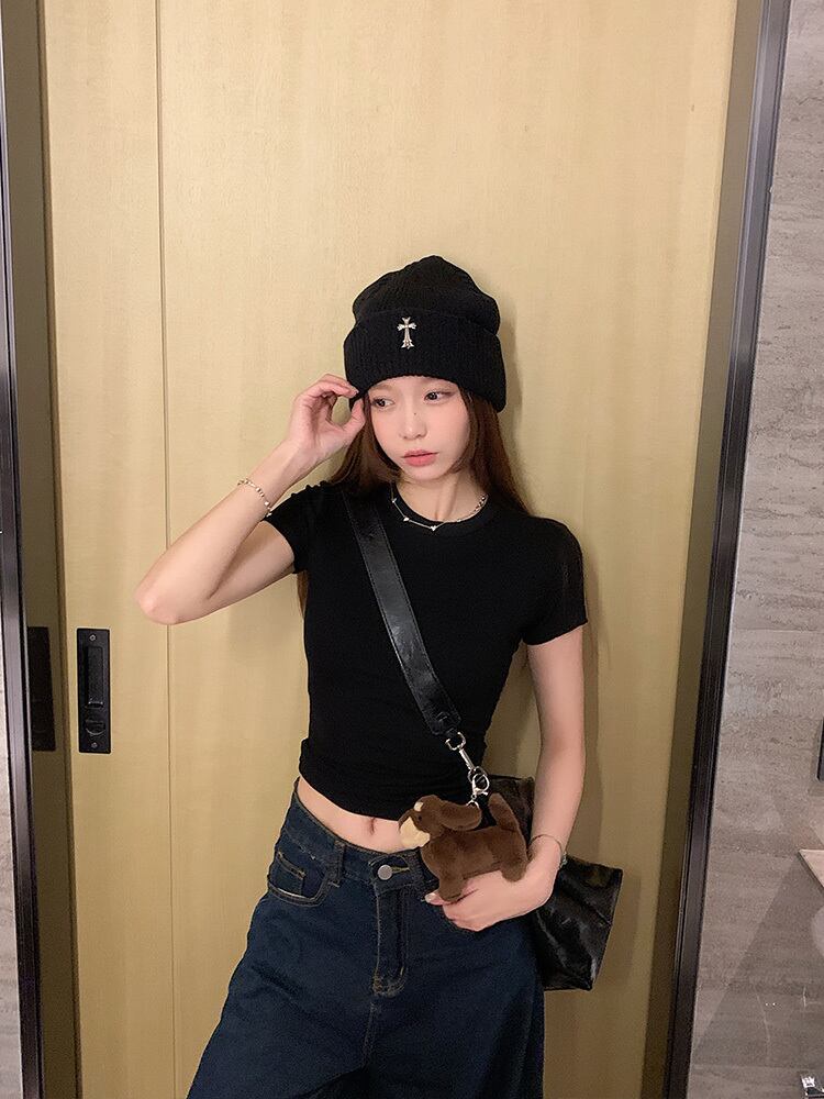 2025年夏の新作、シンプルでありながら美しいフィット感が特徴のラウンドネック短袖Tシャツ。体型を美しく引き立て、どんなコーデにも合わせやすいアイテム。