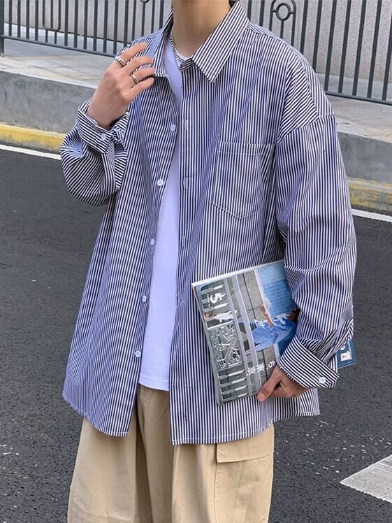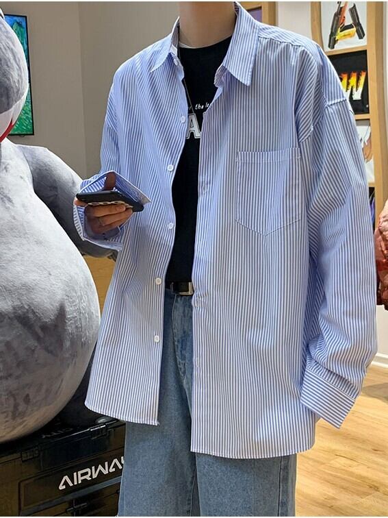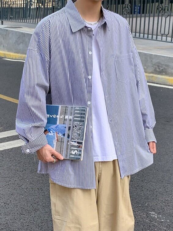 夏にぴったりの薄手のストライプシャツ。長袖で、インス風のカジュアルなデザインが特徴。ゆったりとしたシルエットで、トレンド感溢れる、どんなコーデにも最適な一枚です。