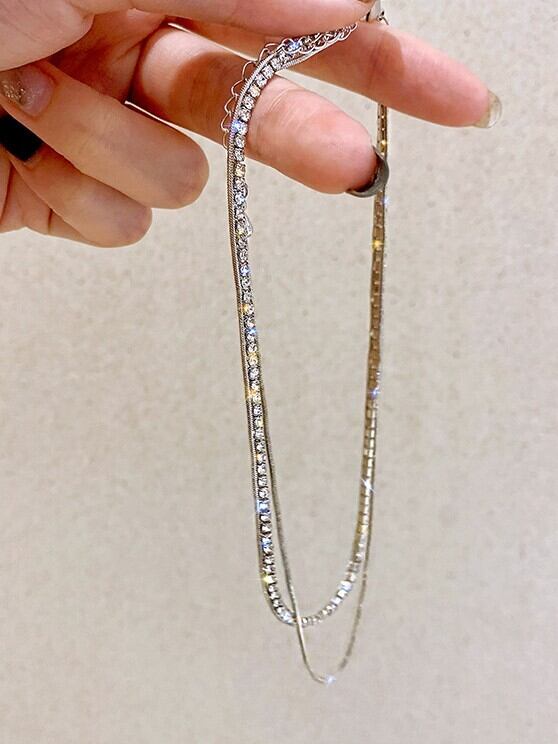 首元を華奢に見せるダブルデザインのジルコニアチョーカー。上品な輝きでデコルテを美しく演出。長さは21〜50cmで調節可能。