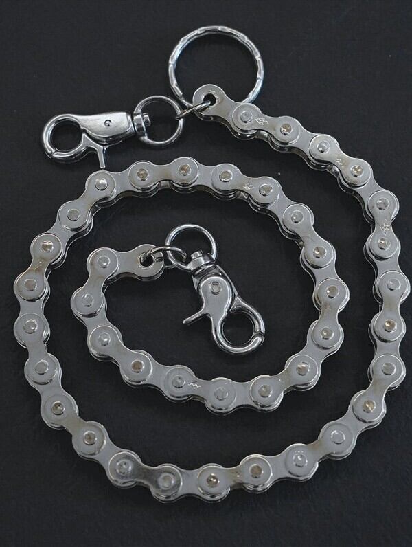 存在感抜群の金属チェーンパンツアクセ。全長63cm、幅1.1cm、重さ200g。ストリートやパンクコーデにぴったりなユニセックスアイテム。