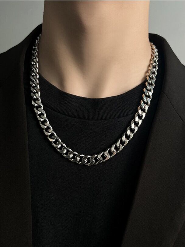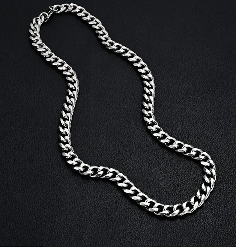 存在感抜群のキューバンチェーンは、男女問わず使えるハイストリートなアクセ。チタン鋼素材で色落ちしにくく、HIPHOPやストリート系ファッションに映える一品です。幅:約1cm/長さ:約45cm
