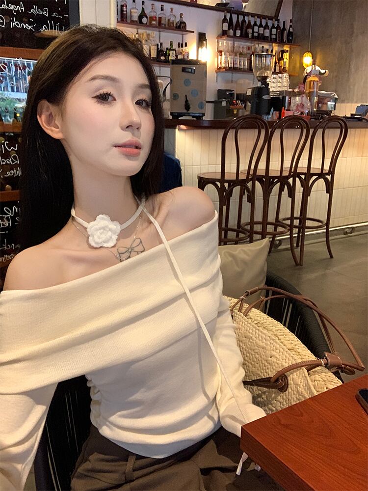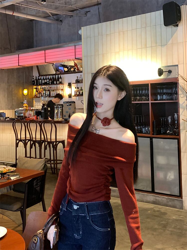 ローズカラーとリボンのディテールがエレガントで、ストレッチ性があり、細見え効果のある女性らしいトップスです。
