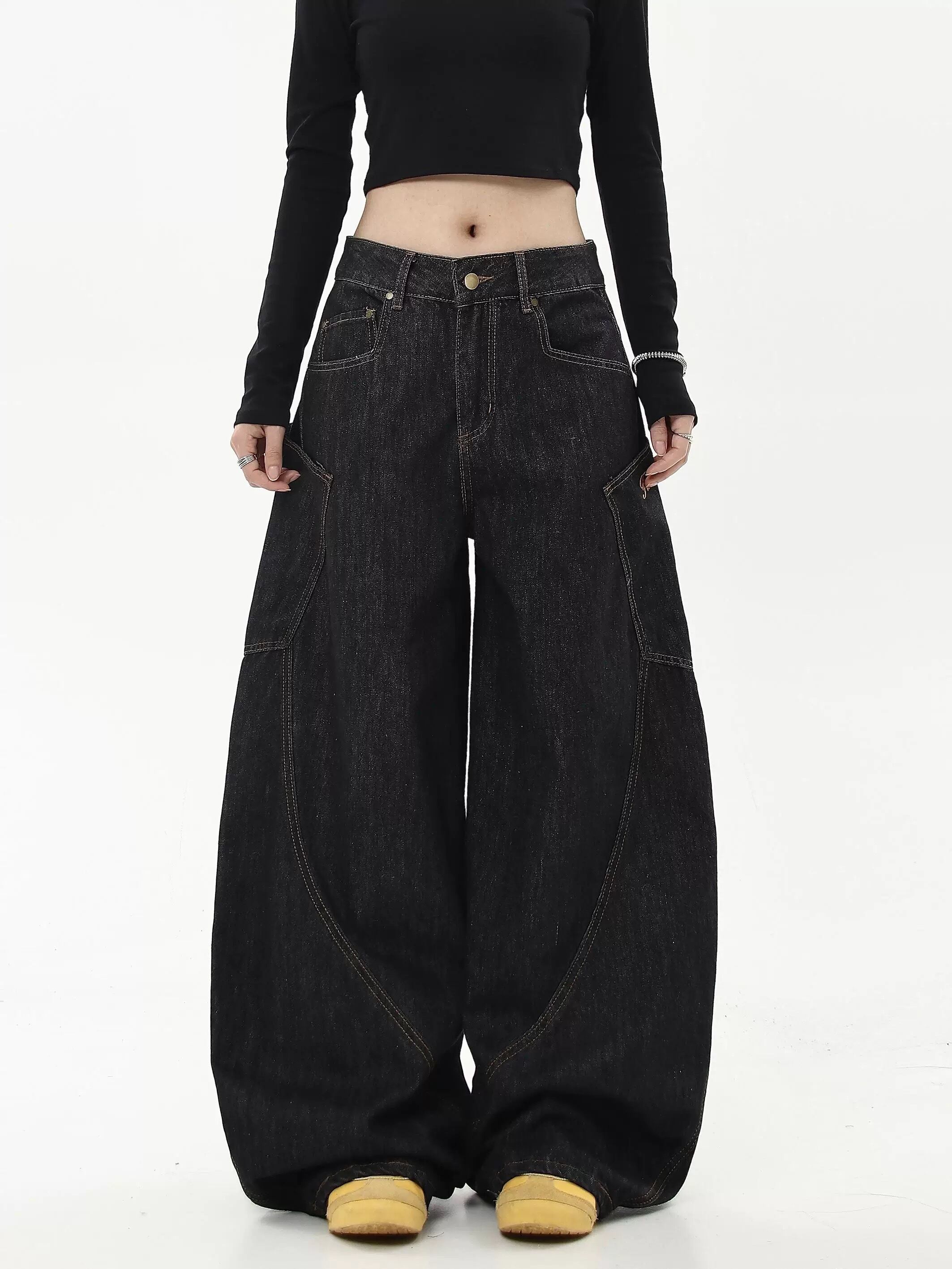 春秋の新作で、ゆったりとしたワイドレッグデザインが特徴。大きなポケットと工装スタイルが特徴的で、カジュアルながら個性的なコーディネートが楽しめます。