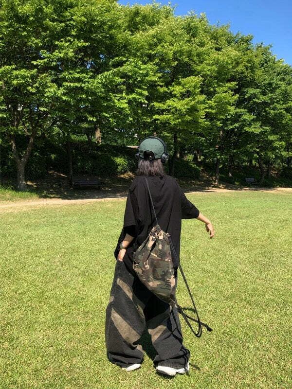 迷彩柄が印象的なドローストリングタイプのバックパック。軽量で収納力もあり、学生の通学やスポーツ、旅行にもぴったり。シンプルで使いやすい万能アイテムです。サイズ:約高さ39cm×横幅33cm。