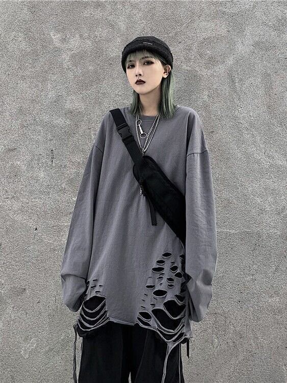 トレンドのダメージヘムがポイントのロング丈Tシャツ。柔らかいコットン素材で快適な着心地を実現。