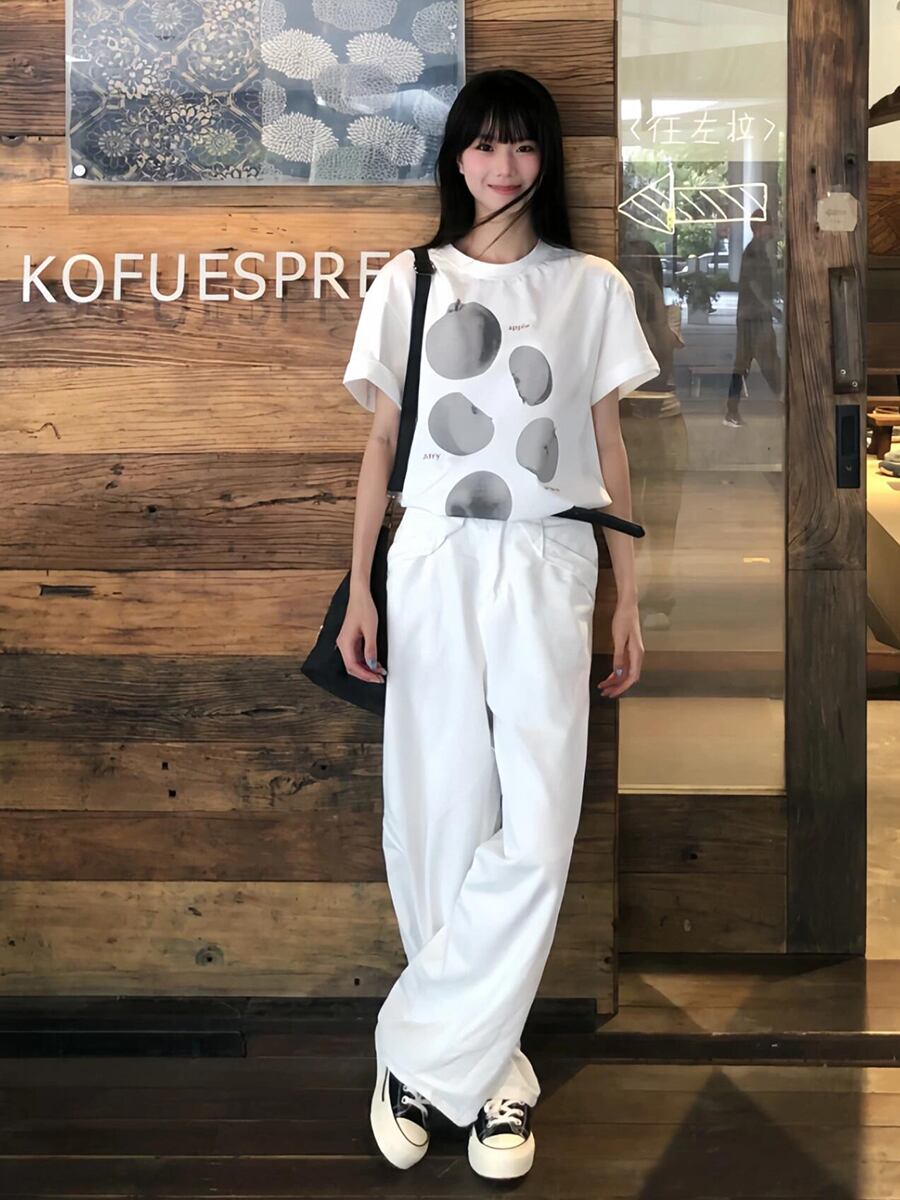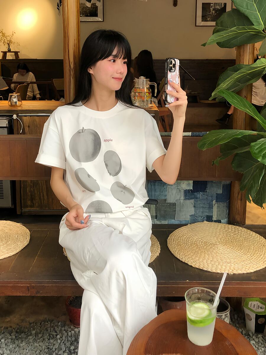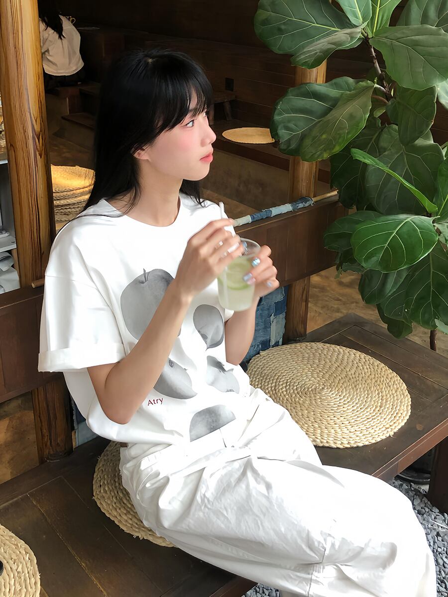 ホワイトアップルプリント半袖Tシャツ TK0221