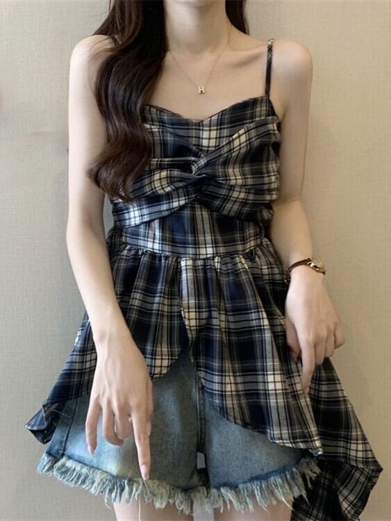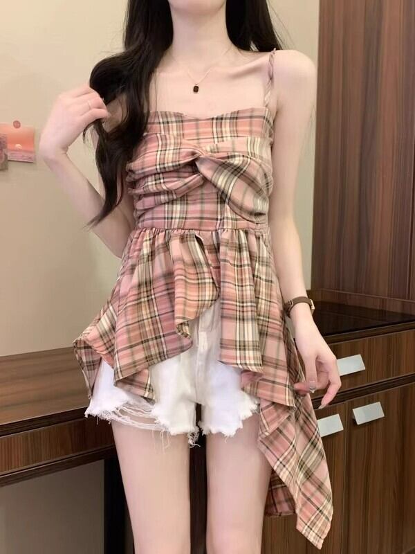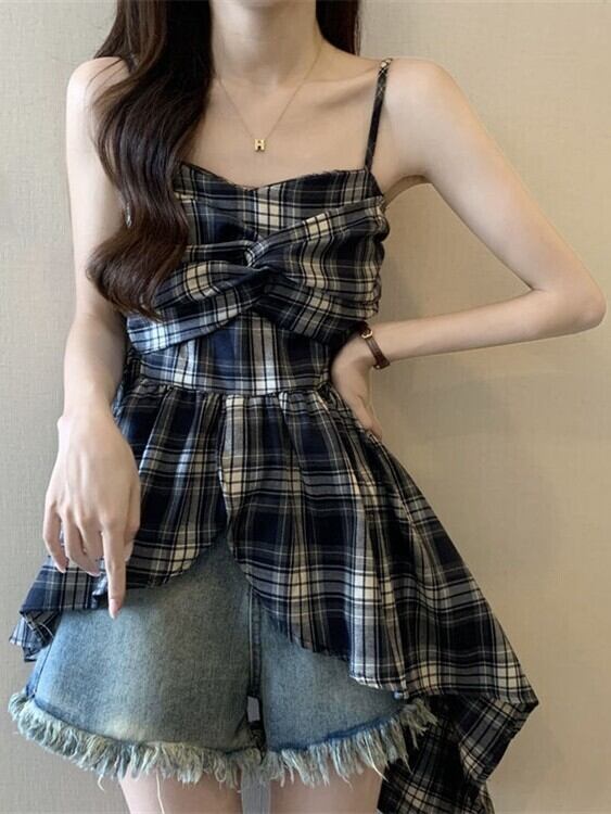 アシンメトリーなカットが個性を引き立て、背中がちらりと見えるデザインで抜け感もプラス。タイトなシルエットでスタイルアップ効果も◎。夏のコーデにぴったりな一枚です。