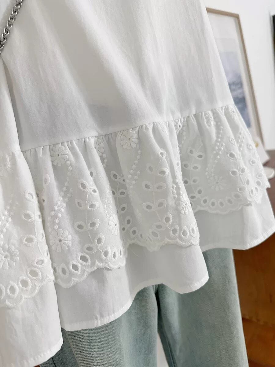 柔らかい素材で肌触りも良く、リラックスした着心地が楽しめます。ゆったりとしたシルエットが可愛らしさを引き立て、重ね着に最適な一枚。シンプルながらも華やかさを感じさせるデザインで、デイリースタイルにもぴったりです。