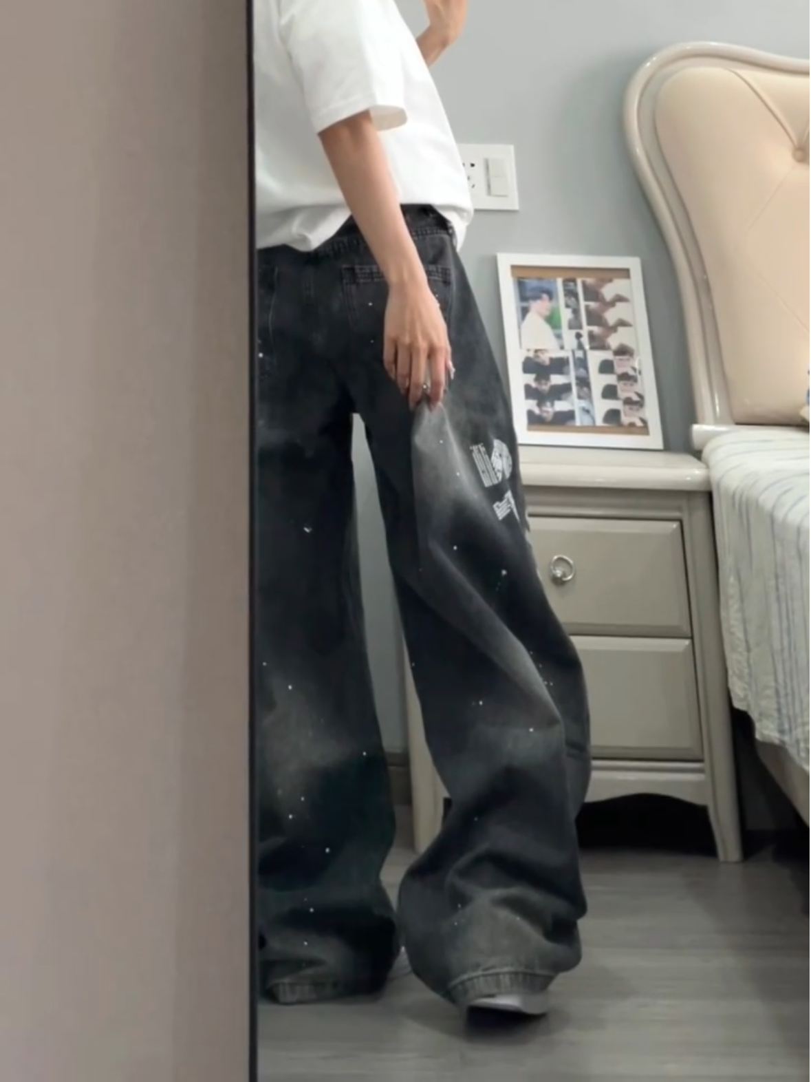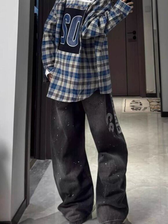 ヴィンテージ感漂うグレーカラーのワイドデニム。ウォッシュ加工とペイント風デザインでこなれ感を演出。ゆったりとしたシルエットで男女問わず楽しめるユニセックス仕様。カジュアルにもストリートスタイルにも合わせやすく、シンプルながら存在感のある1本。