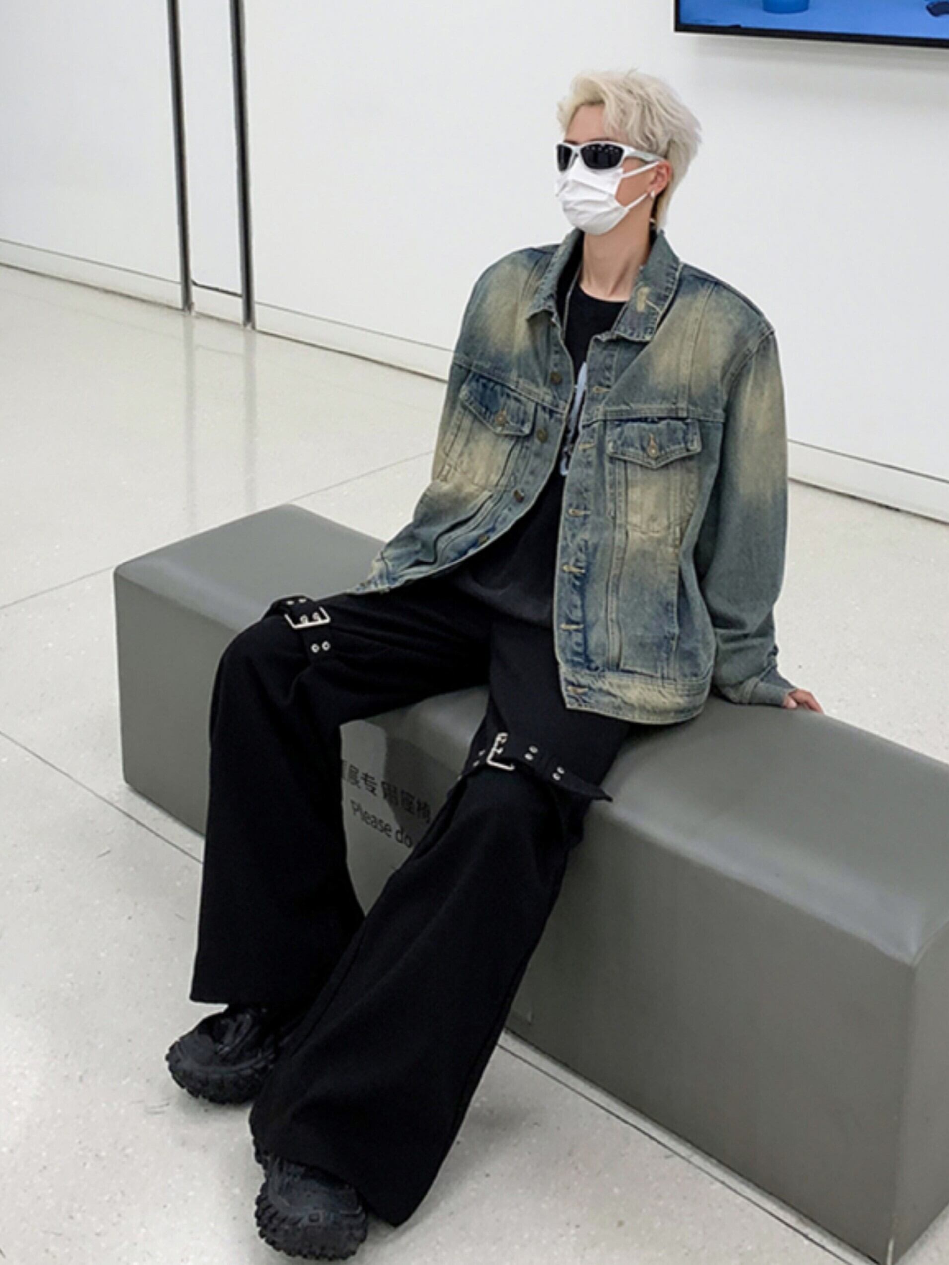 スウェットとデニムの組み合わせで、カジュアルでありながらおしゃれな印象を与えます。春秋にぴったりのアイテムです。