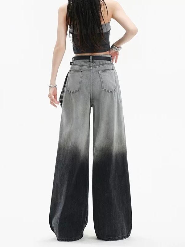 ワイドストレートダメージグラデーションブラックデニムパンツ