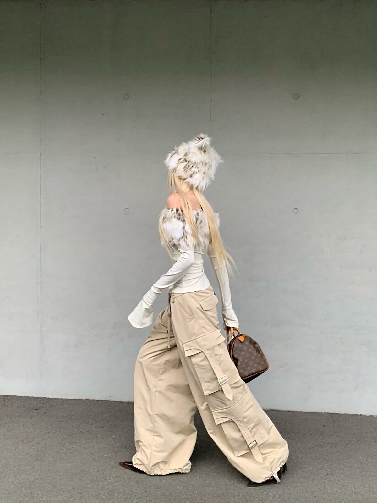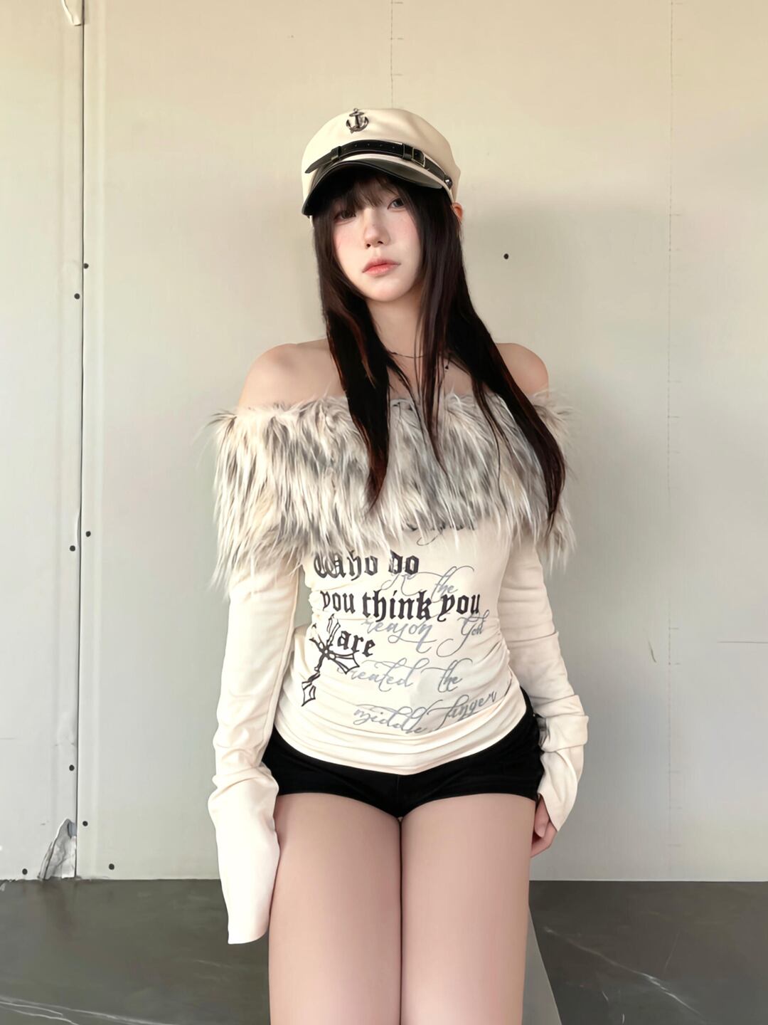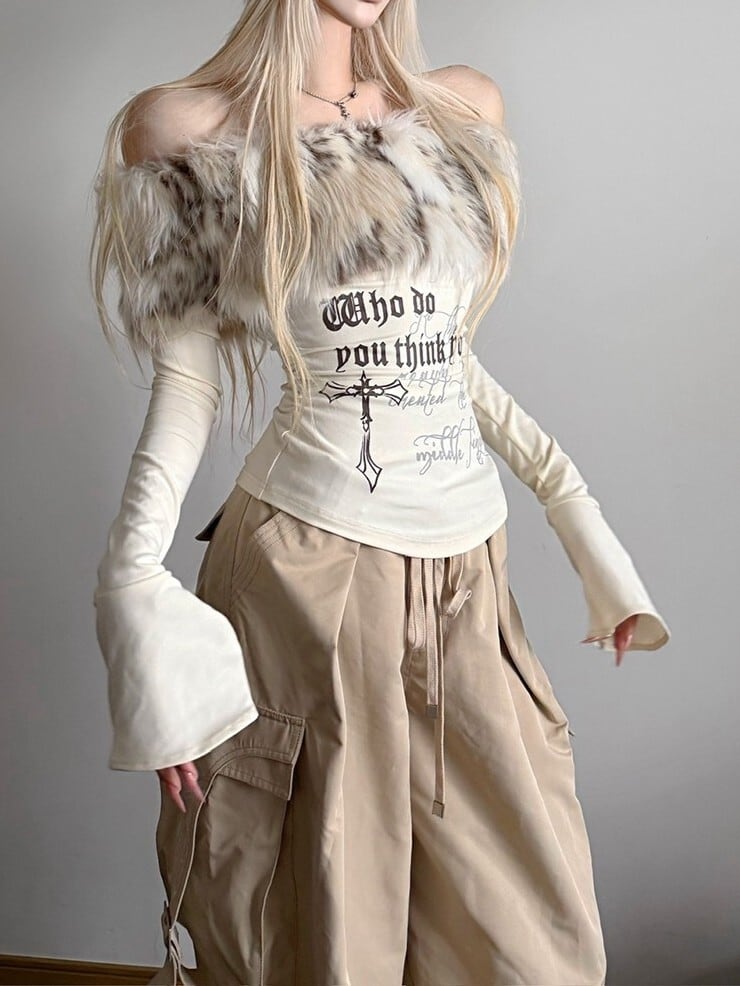 ファーオフショルダートップス TK0355