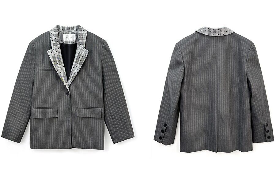 レースカラーグレーストライプジャケット TK0340