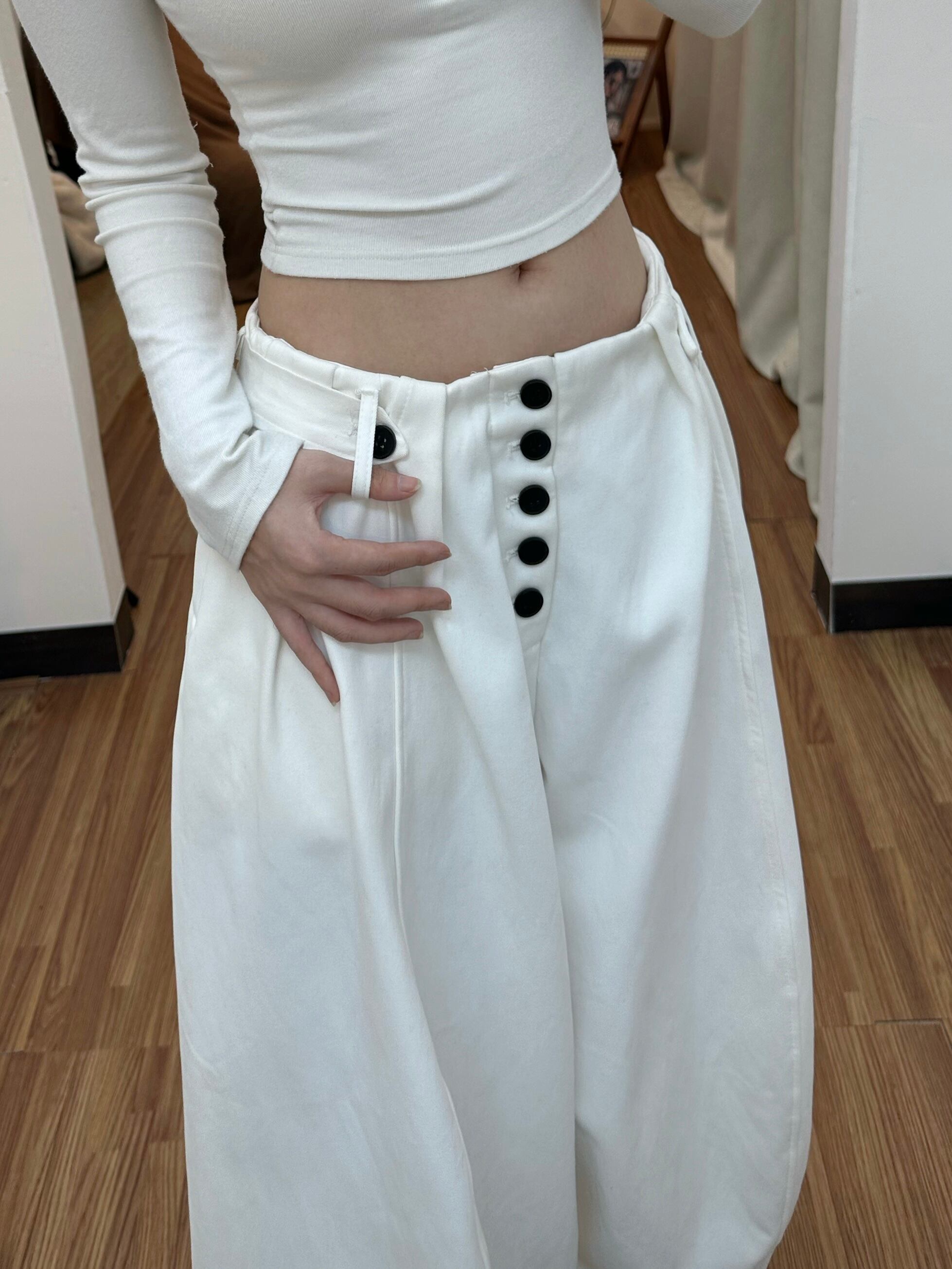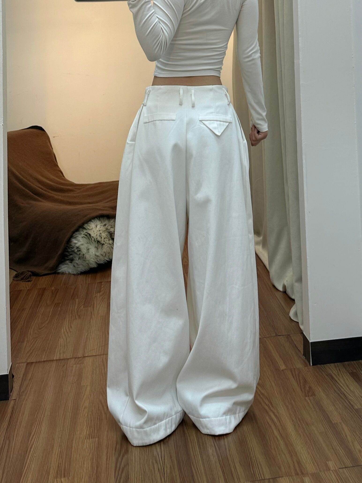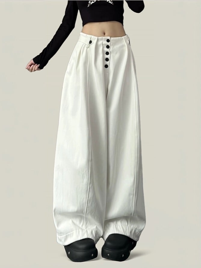 商品説明:ハイウエスト×ワイドシルエットで、脚をより長く見せてくれるシルエットに仕上げました。ワイドシルエットながら、ウエスト部分が締まるデザインなので、スタイルアップも可能です。