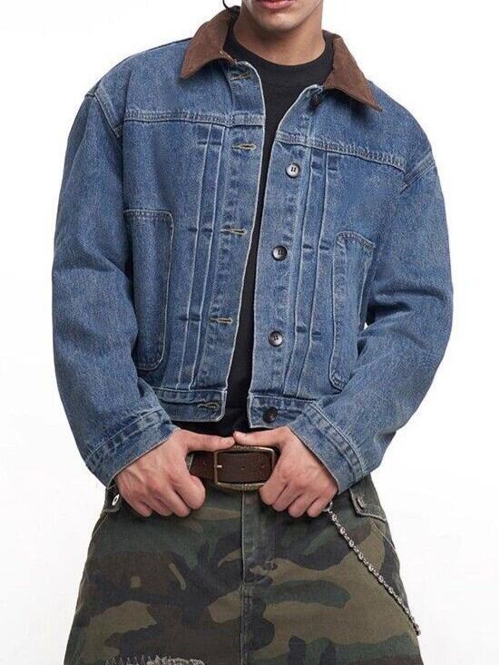 スエード調 襟付き デニムジャケット TK0393