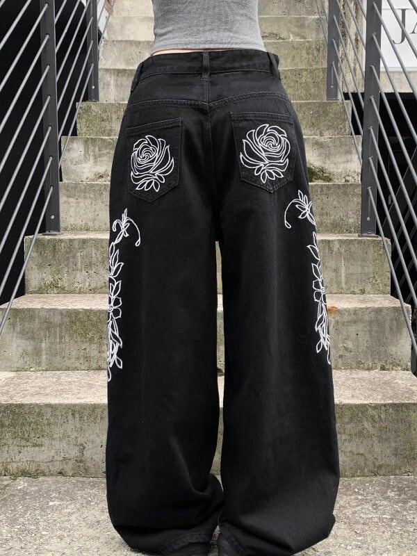 フラワーデザイン カーブデニムパンツ TK0405